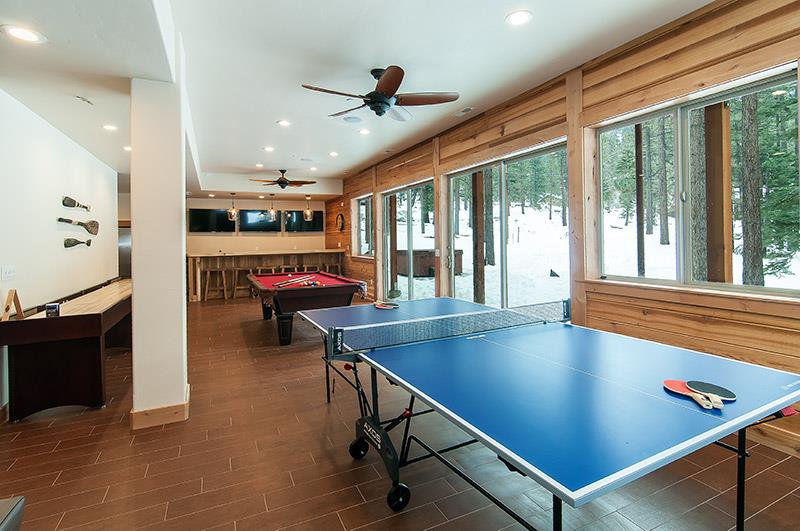 7 bedroom/6.5 bath Heavenly Estate a short couple blocks from Heavenly California Ski Lodge. This large 5600 sq. ft Estate features a huge game room with Ping pong, Pool Table. Large Flat Screen TV above Fireplace with comfortable sofas. Bar with bar chairs, two large Flat Screen TVs. Game room connects to Movie Theater with 120 inch HD Screen and 20 personal Theater seats.