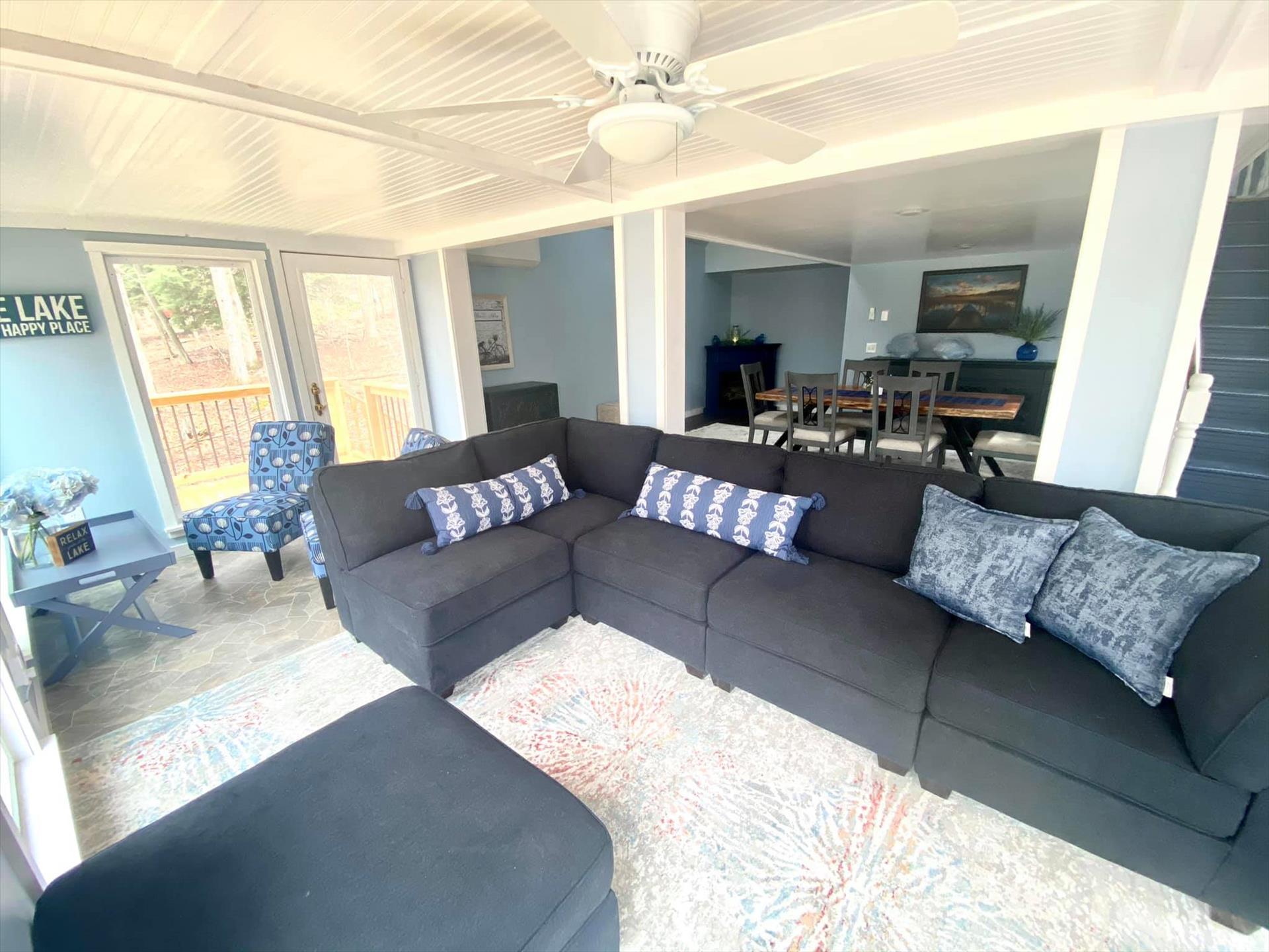 Livingroom - Roku TV, sectional, view of the lake, sitting area.