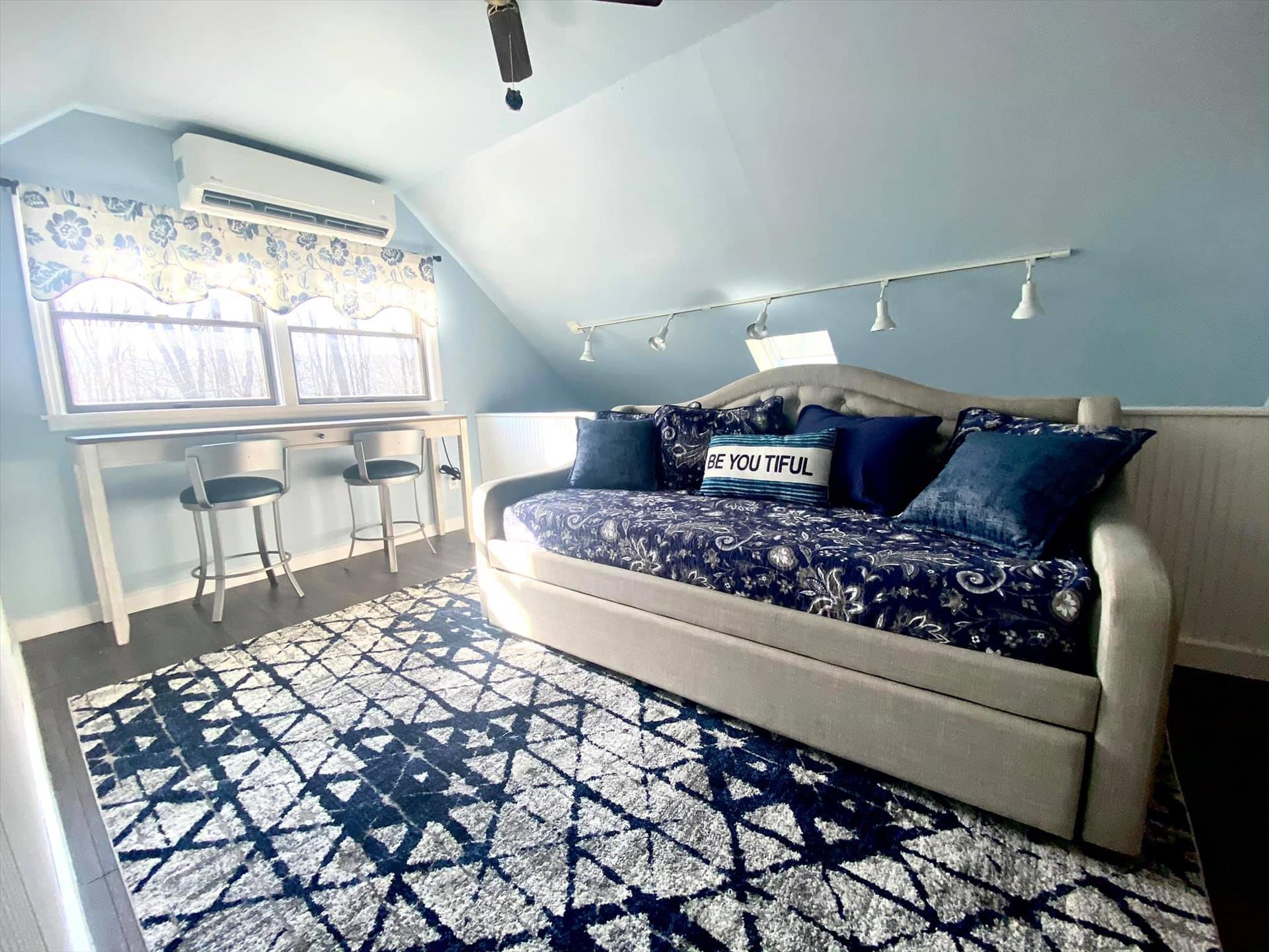 Master Bedroom - King bed with a day bed- pull out trundle, workstation w/lake view, air condition, bathroom with shower. (upper level).