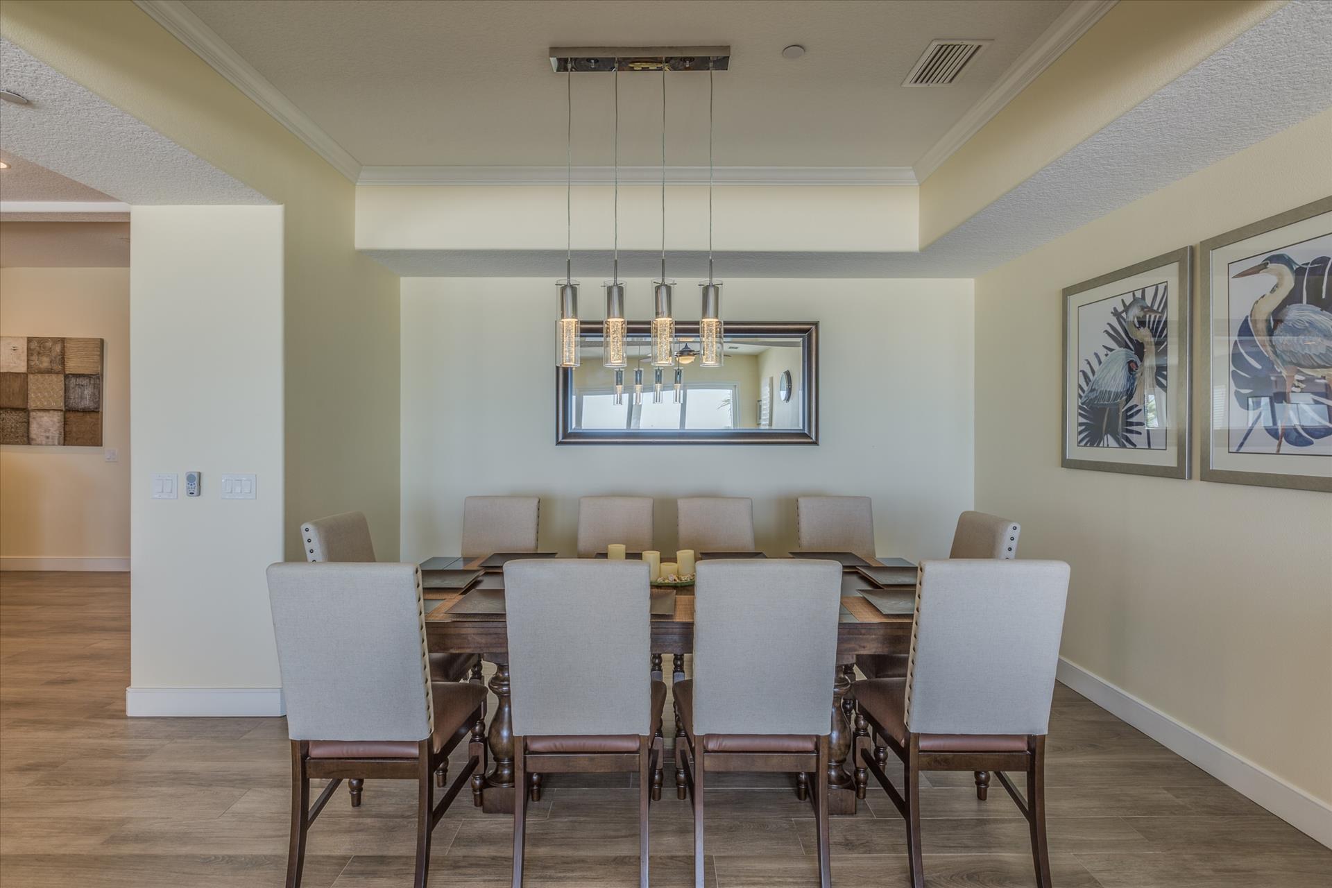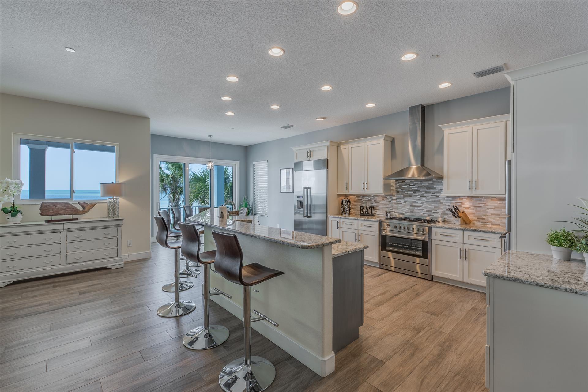 The second floor has a fantastic kitchen featuring a gas hob and stove, electric combo oven/microwave, refrigerator and dishwasher with seating for six at the island. There is also a wet bar and breakfast nook together with a formal dining area and a large sitting area with flat screen TV. There is a huge balcony that has sweeping views up and down the white sandy beaches of Indian Shores. There is an outdoor bar area, Weber grill as well as space for dining and relaxation.