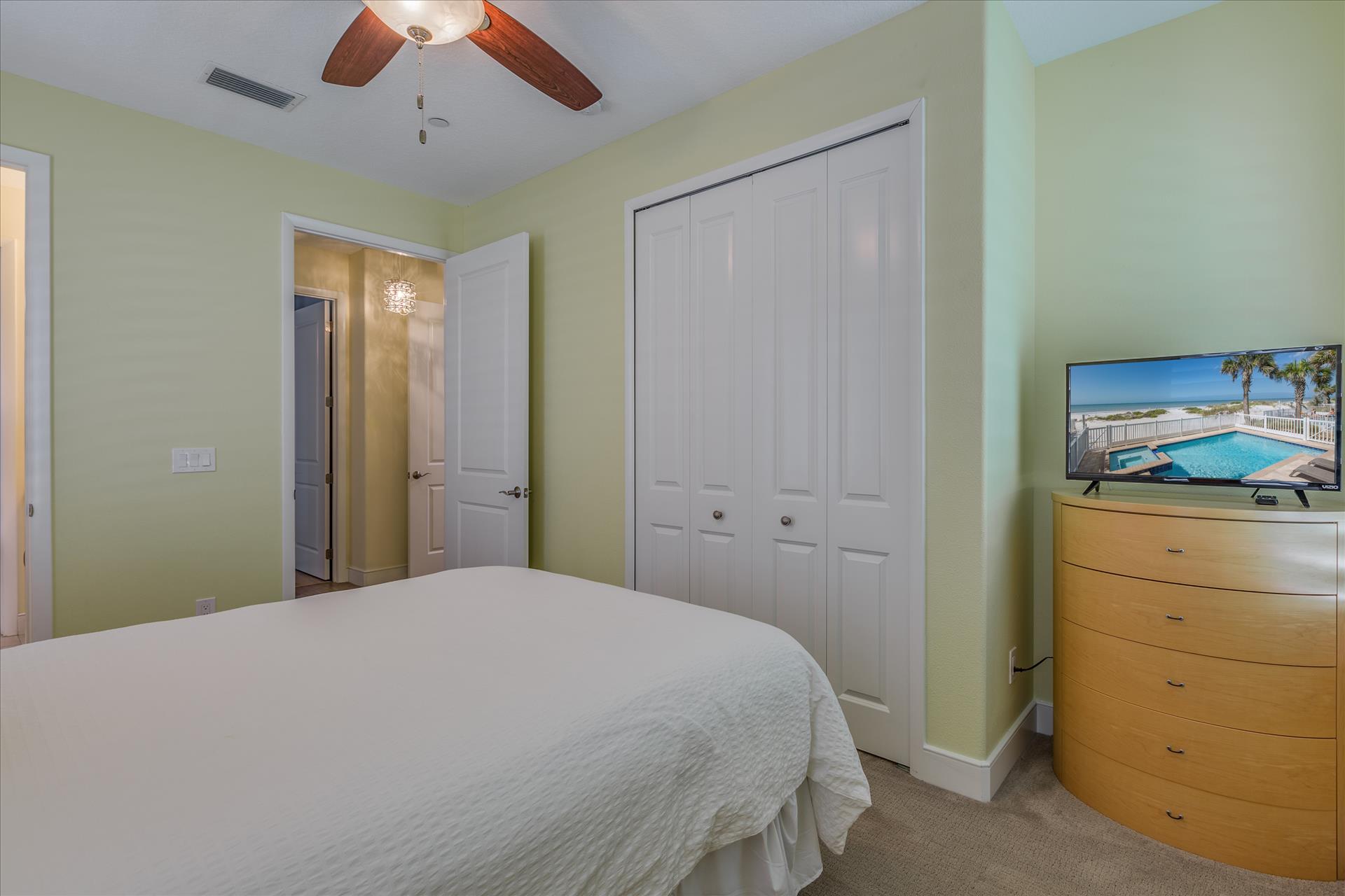 The third floor consists of 4 more bedrooms. The master bedroom has a king bed and large walk in closet. The master bathroom features a soaking tub and separate walk in shower as well as a double sink/vanity unit. Bedroom 2 - has a king bed and en suite bathroom with tub/shower combination. The other two bedrooms on this level share a Jack'n'Jill bathroom. One bedroom has a queen bed and the other has a king bed. There is also a laundry room on the 3rd floor, as well as another large balcony with incredible birds’ eye views over the beach. All of the bedrooms have flat screen TV's.