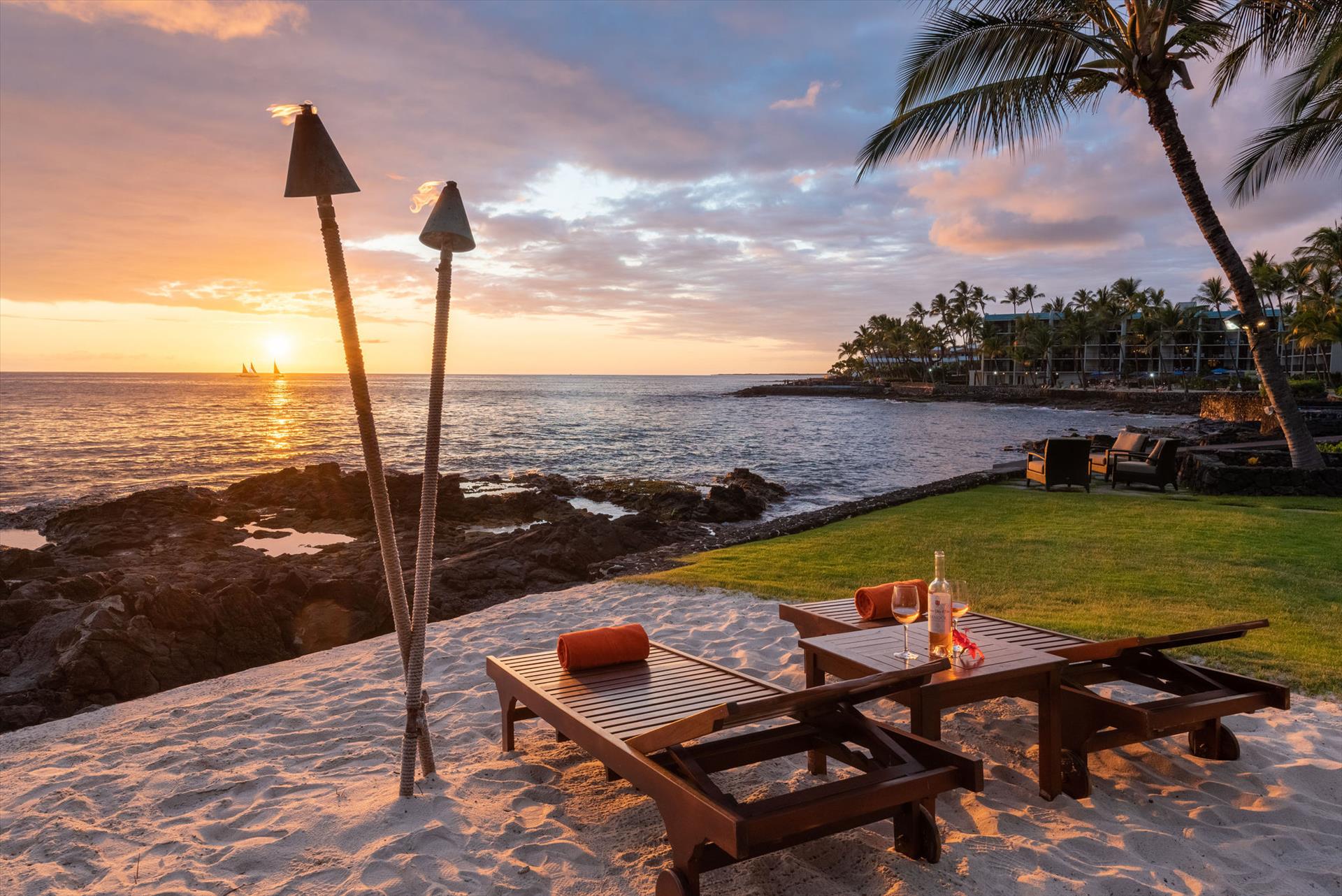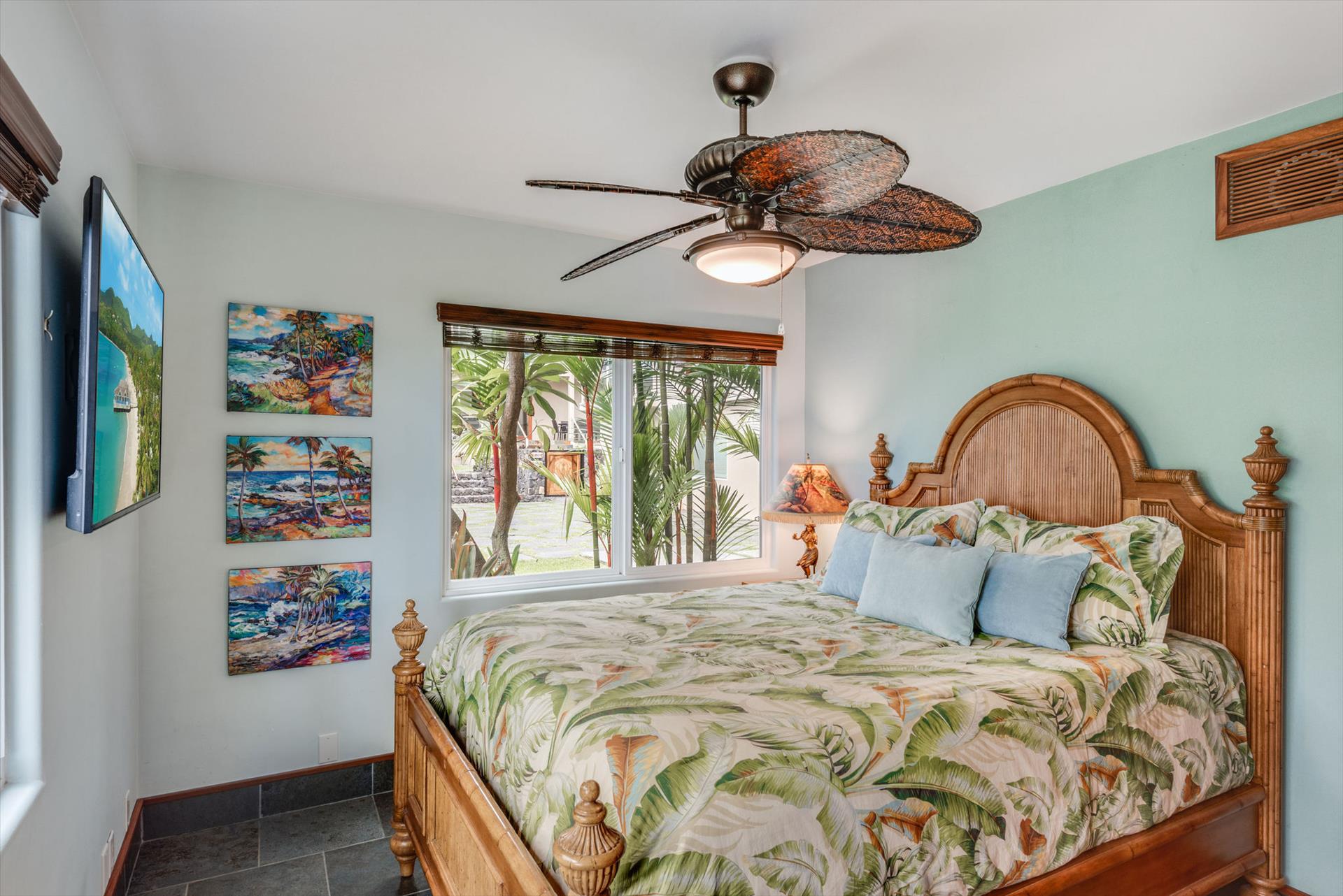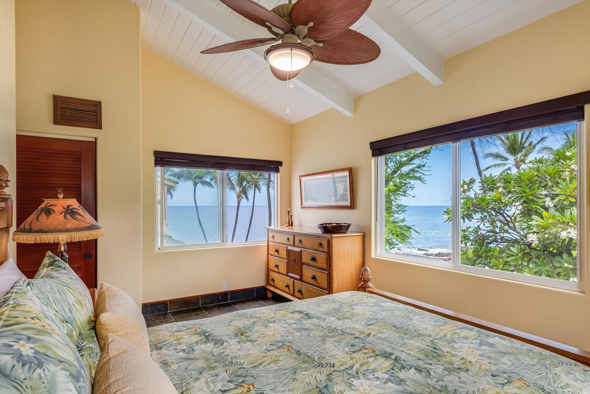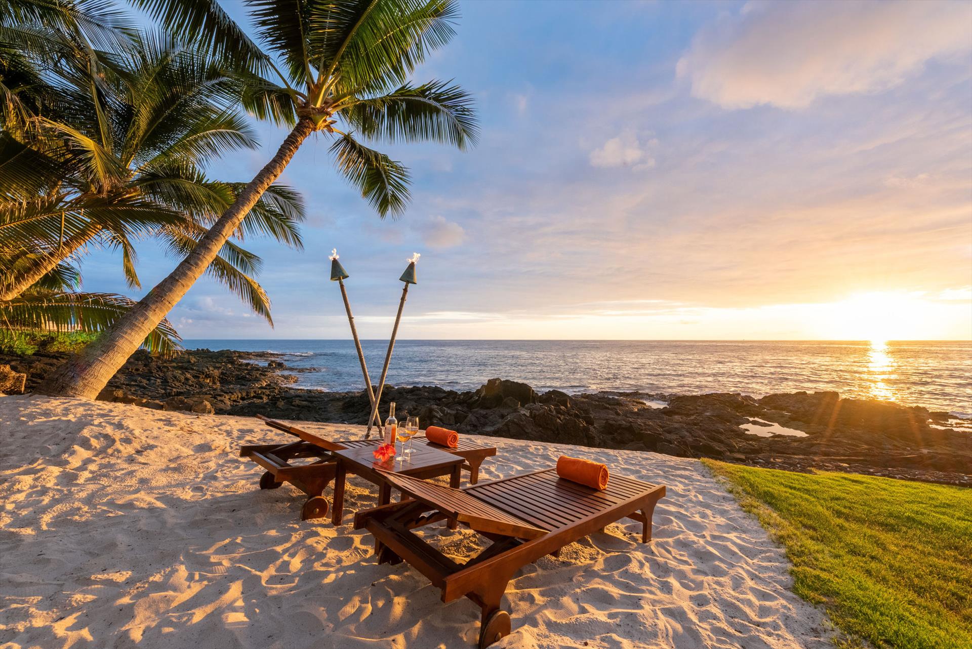 Oceanfront Makai Estate overlooks the refreshing freshwater pool and the rhythmic Pacific waves, the most breathtaking part of the Moana Makai Home may be the tranquil outdoor lanai. Spot the seasonal humpback whales while sipping your morning local Kona Coffee (arguably some of the best coffee on earth). Pods of local spinner dolphins swim by most days, making their daily commute. It truly becomes your own little piece of paradise-complete with a spectacular Hawaiian sunset to finish!