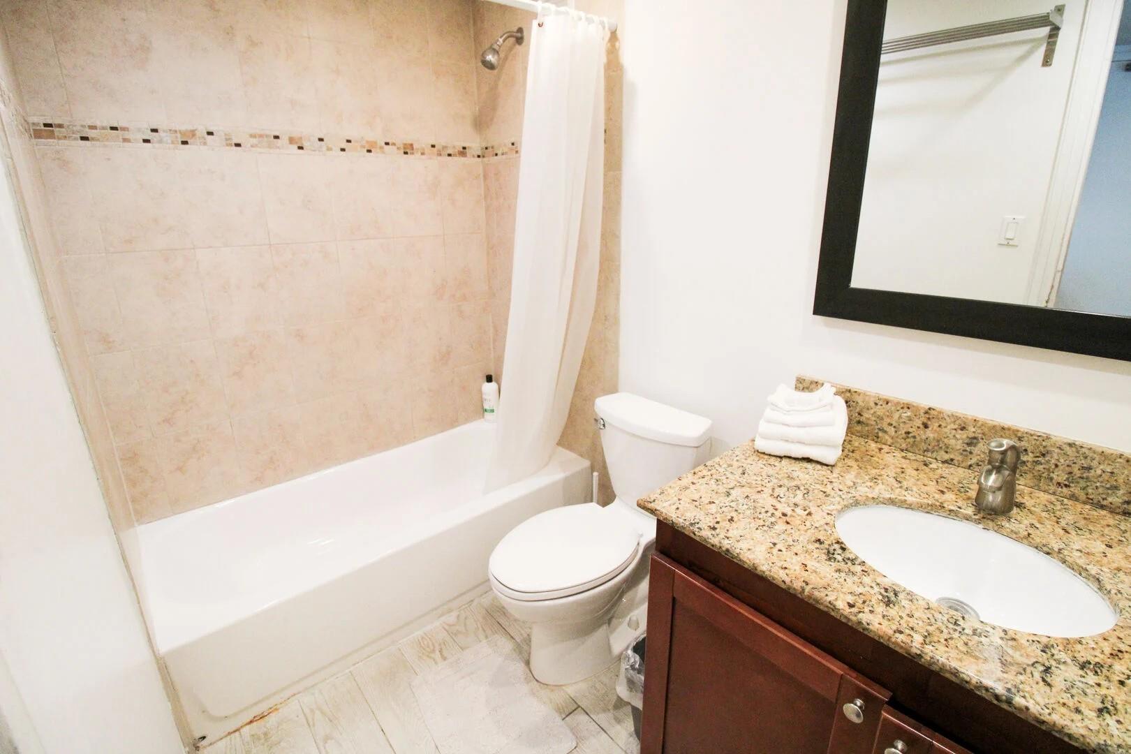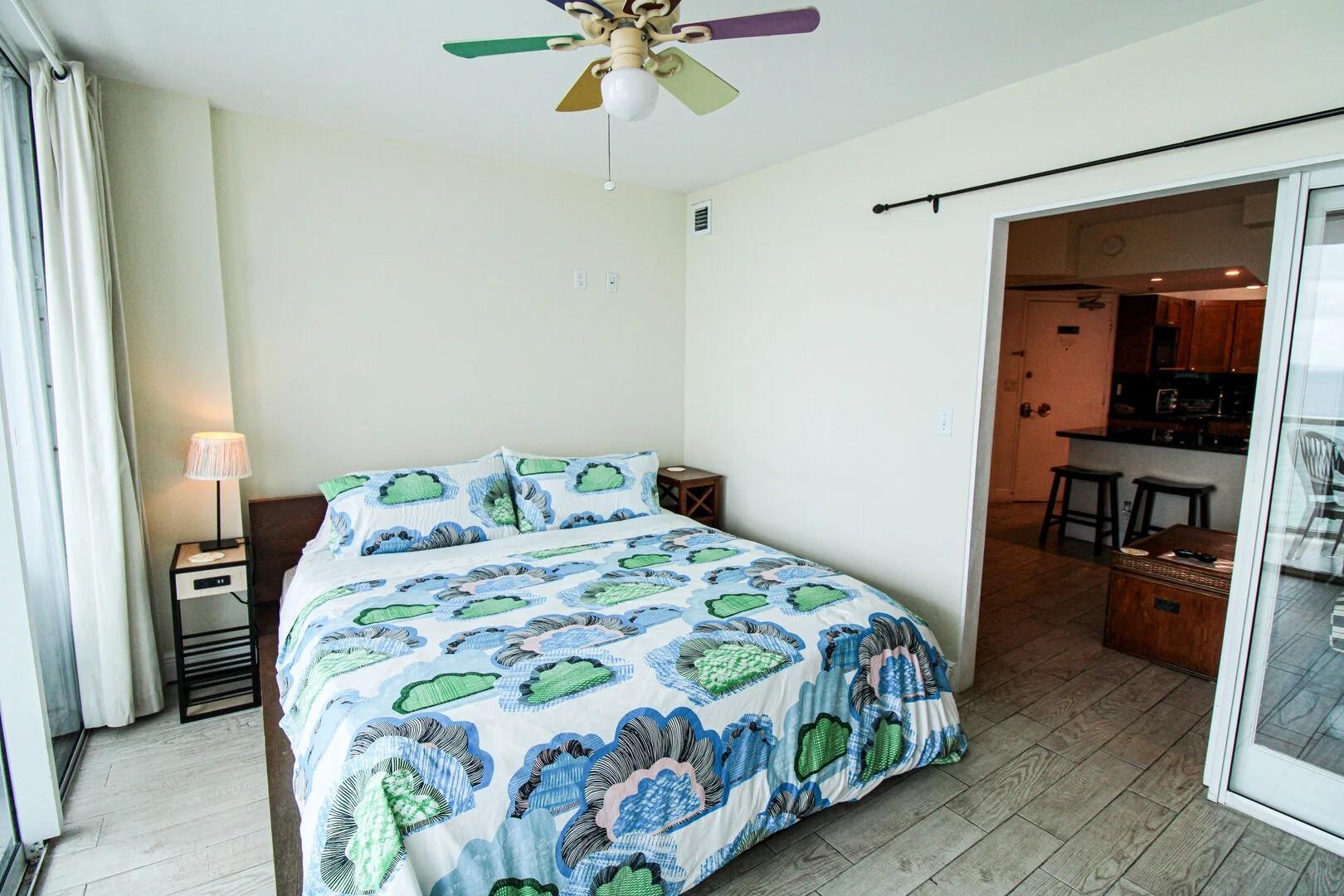 This fully furnished studio has a kitchenette with microwave, toaster oven, coffee pot, and all utensils. Smart Tv with cable and streaming access. One queen bed and a futon for sleeping up to 4 persons. New poo, tiki bar, restaurant, commercial shopping inside the building. Walk to restaurants nearby. Laundry facilities inside the building.