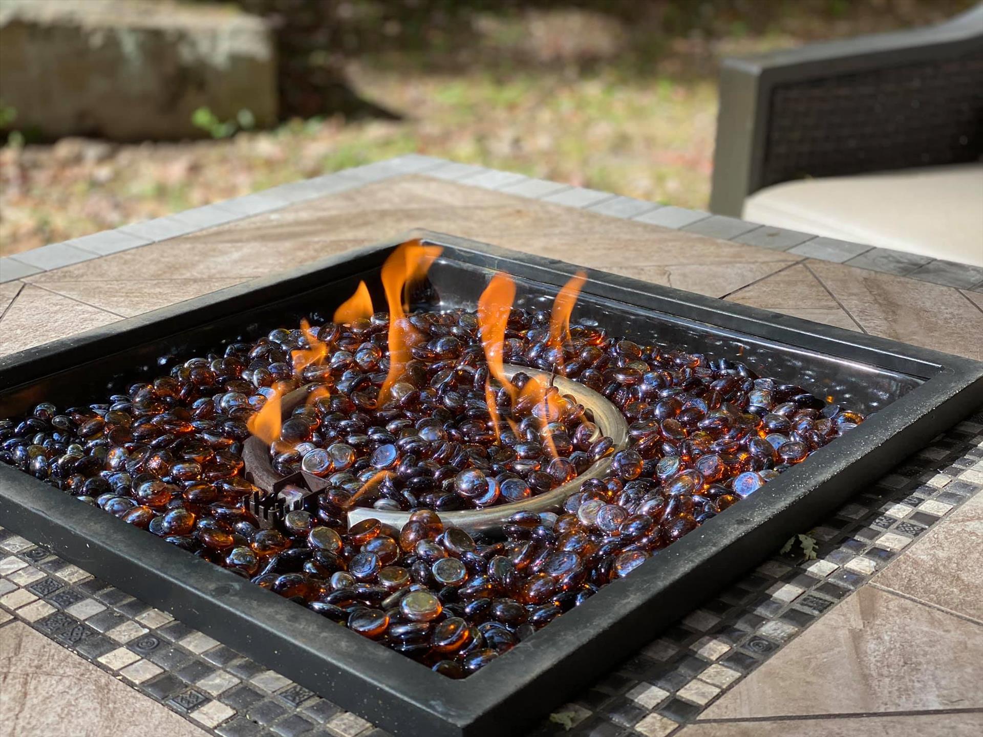 Wrap around porch - Propane firepit with 4 cushioned chairs, propanone grill
