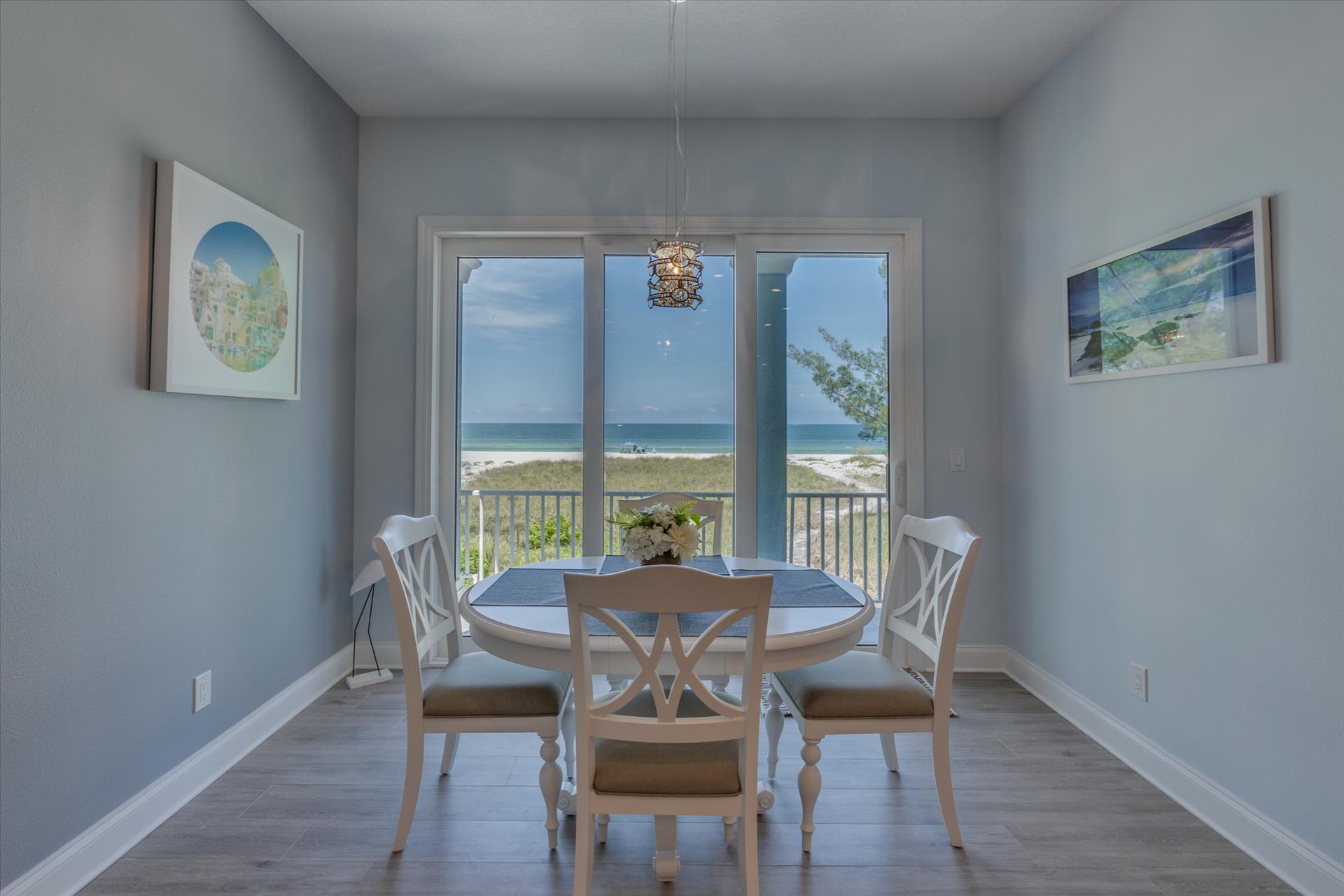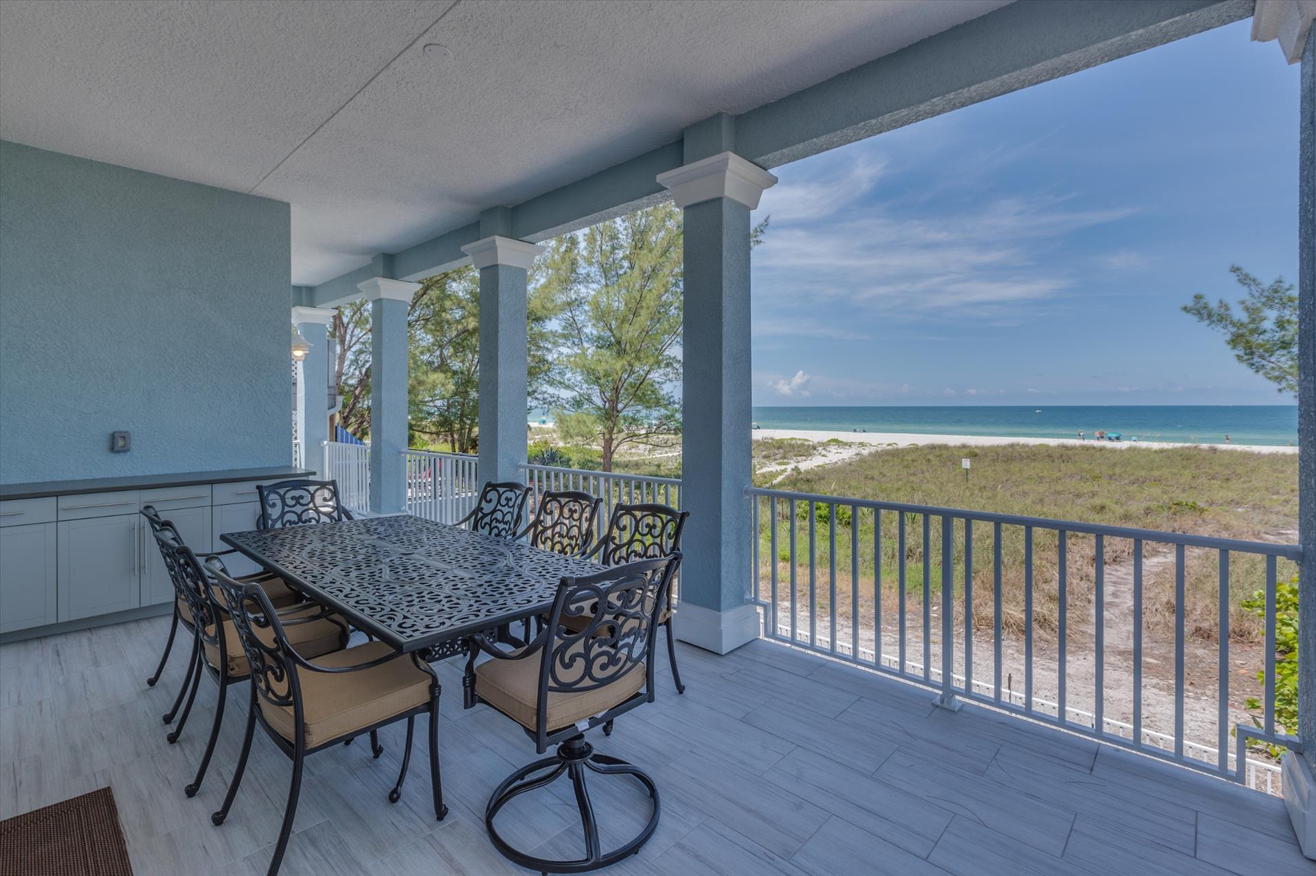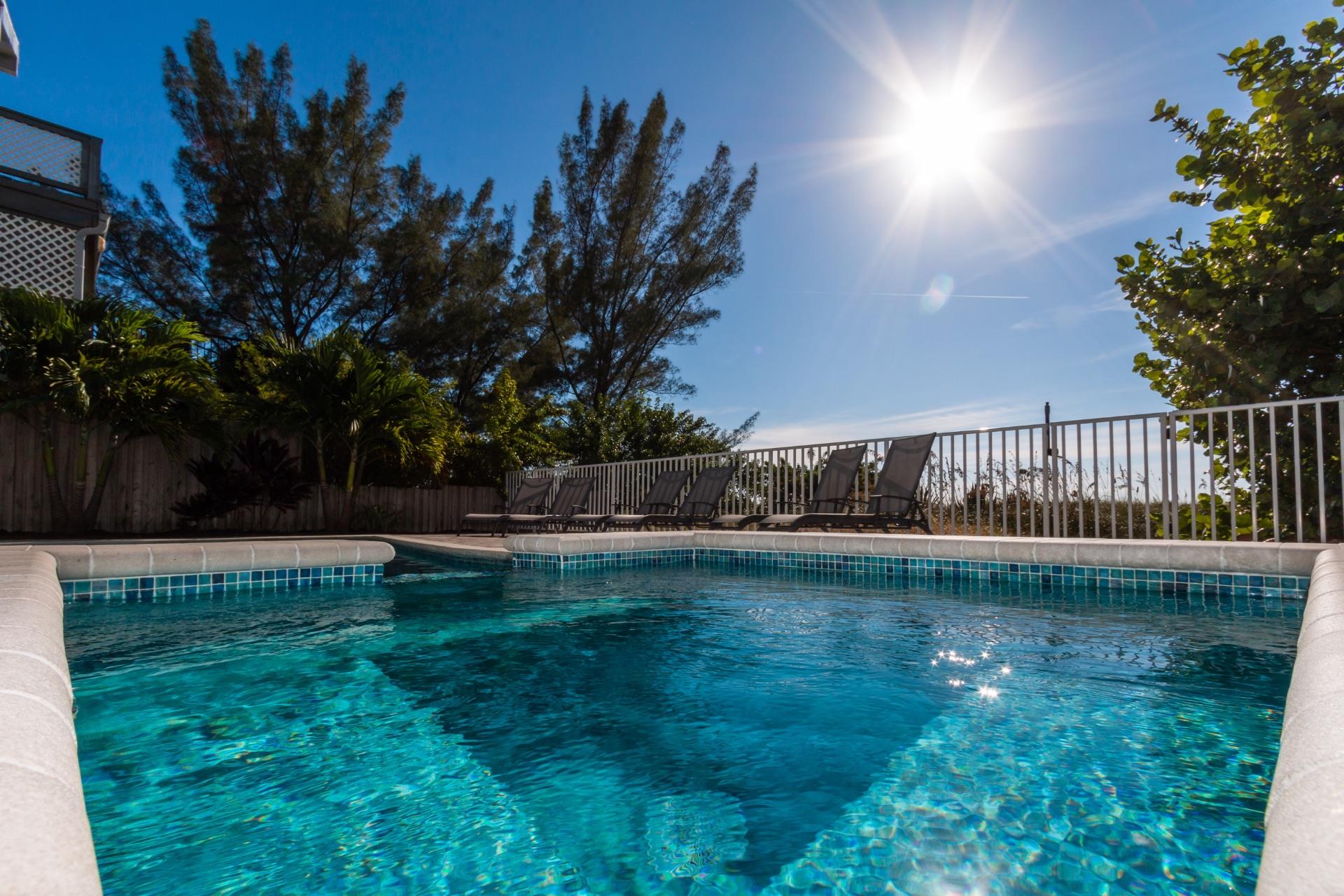 The rear of the property has a pool and hot tub, with sunbeds and seating for you and your party to relax in. There is also an outdoor shower for you to rinse off after a dip in the warm Gulf of Mexico which is just steps away. There are plenty of amenities and toys for your use. We have beach chairs and umbrellas, Paddle boards and Kayaks available for your use*. There is also a full crib, pack-n-play, high chair and baby gates for your convenience.