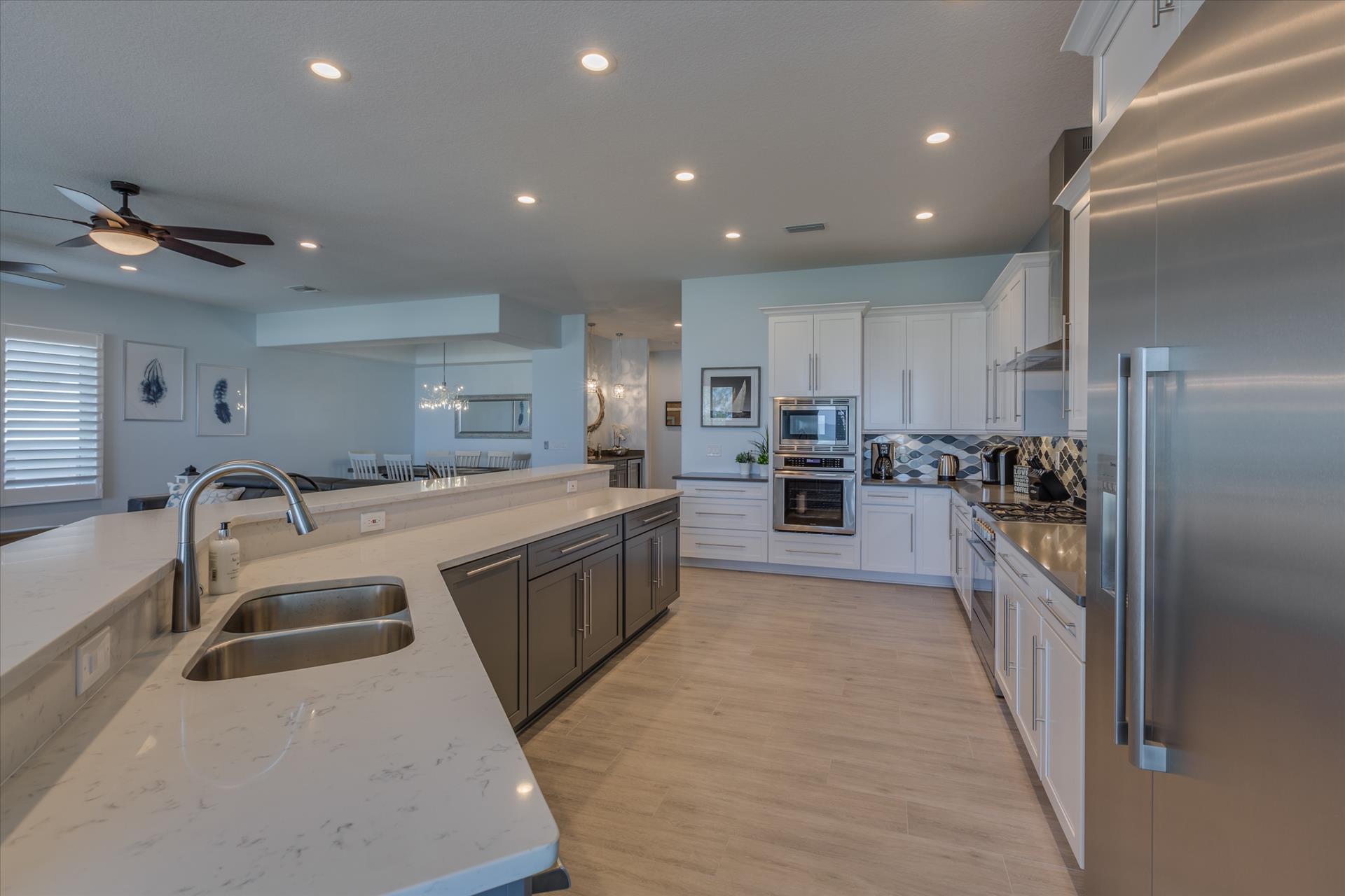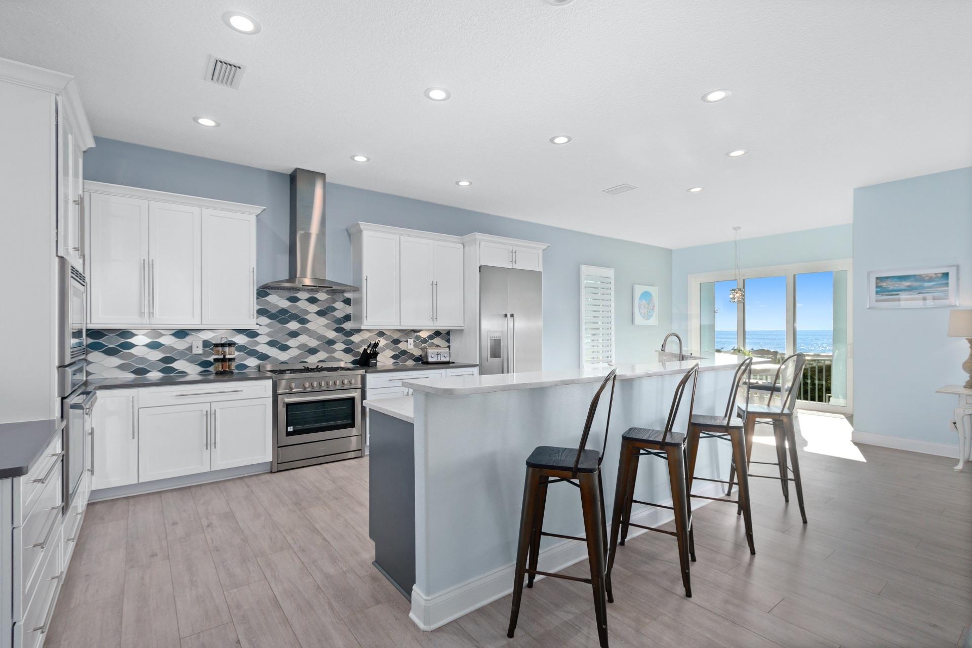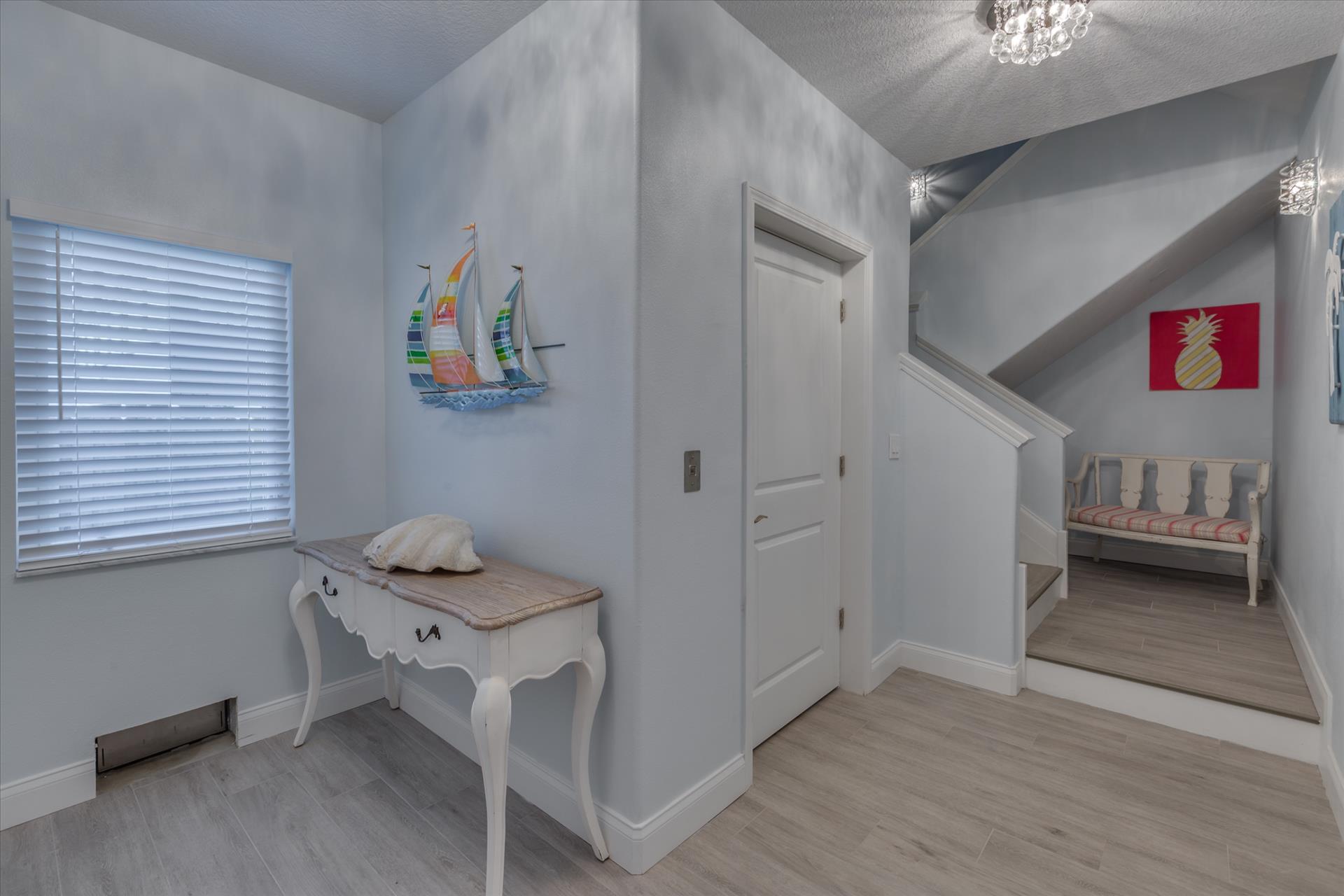 The rear of the property has a pool and hot tub, with sunbeds and seating for you and your party to relax in. There is also an outdoor shower for you to rinse off after a dip in the warm Gulf of Mexico which is just steps away. There are plenty of amenities and toys for your use. We have beach chairs and umbrellas, Paddle boards and Kayaks available for your use*. There is also a full crib, pack-n-play, high chair and baby gates for your convenience.