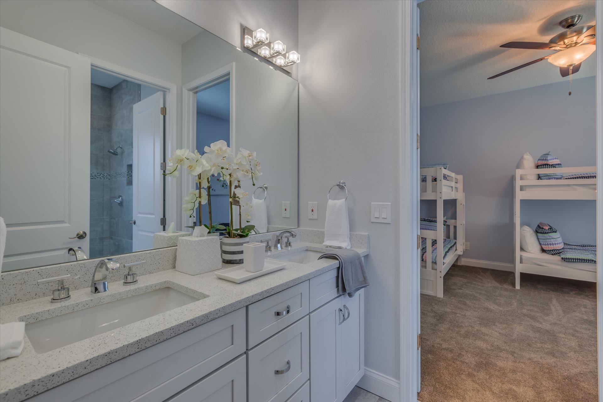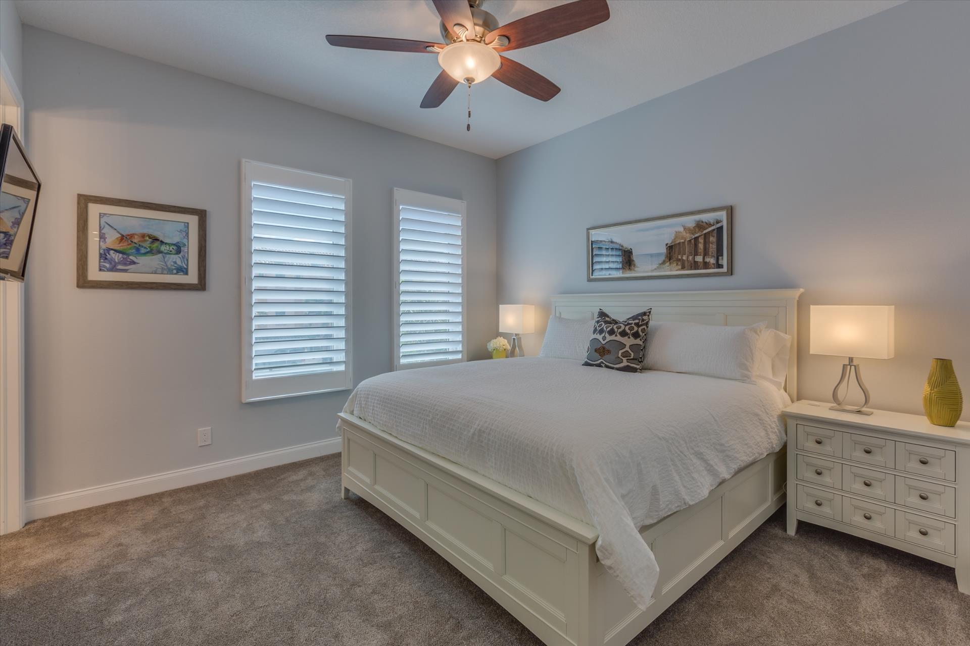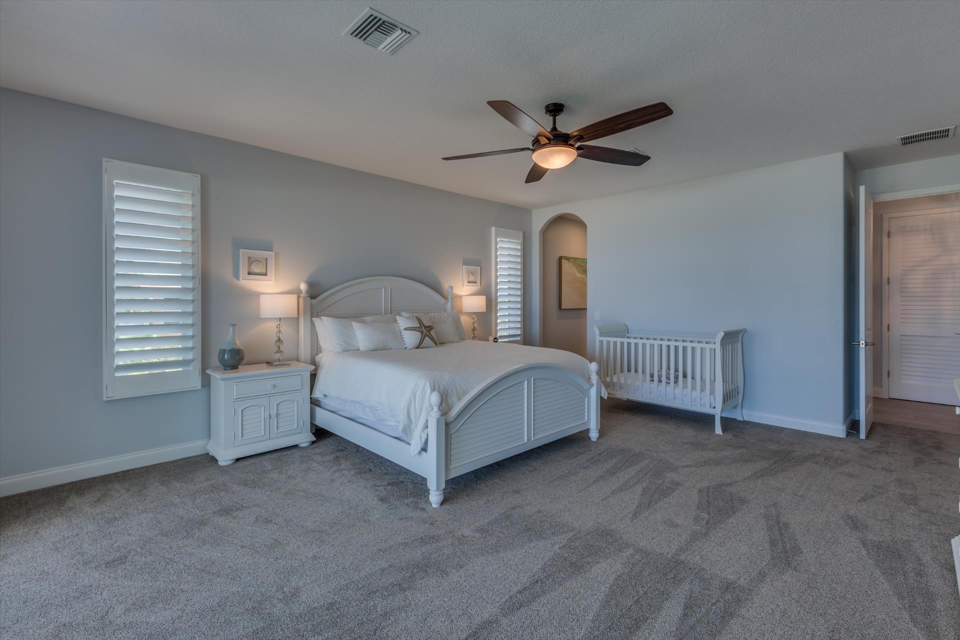 The third floor consists of the remaining 4 bedrooms. The master bedroom has a king bed and large walk in closet. The master bathroom features a soaking tub and separate walk in shower as well as a double sink/vanity unit.
