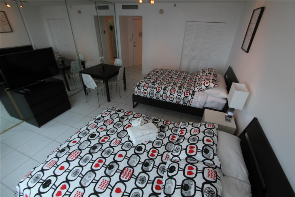 Beach chairs, 1 umbrella and beach towels are inside the room