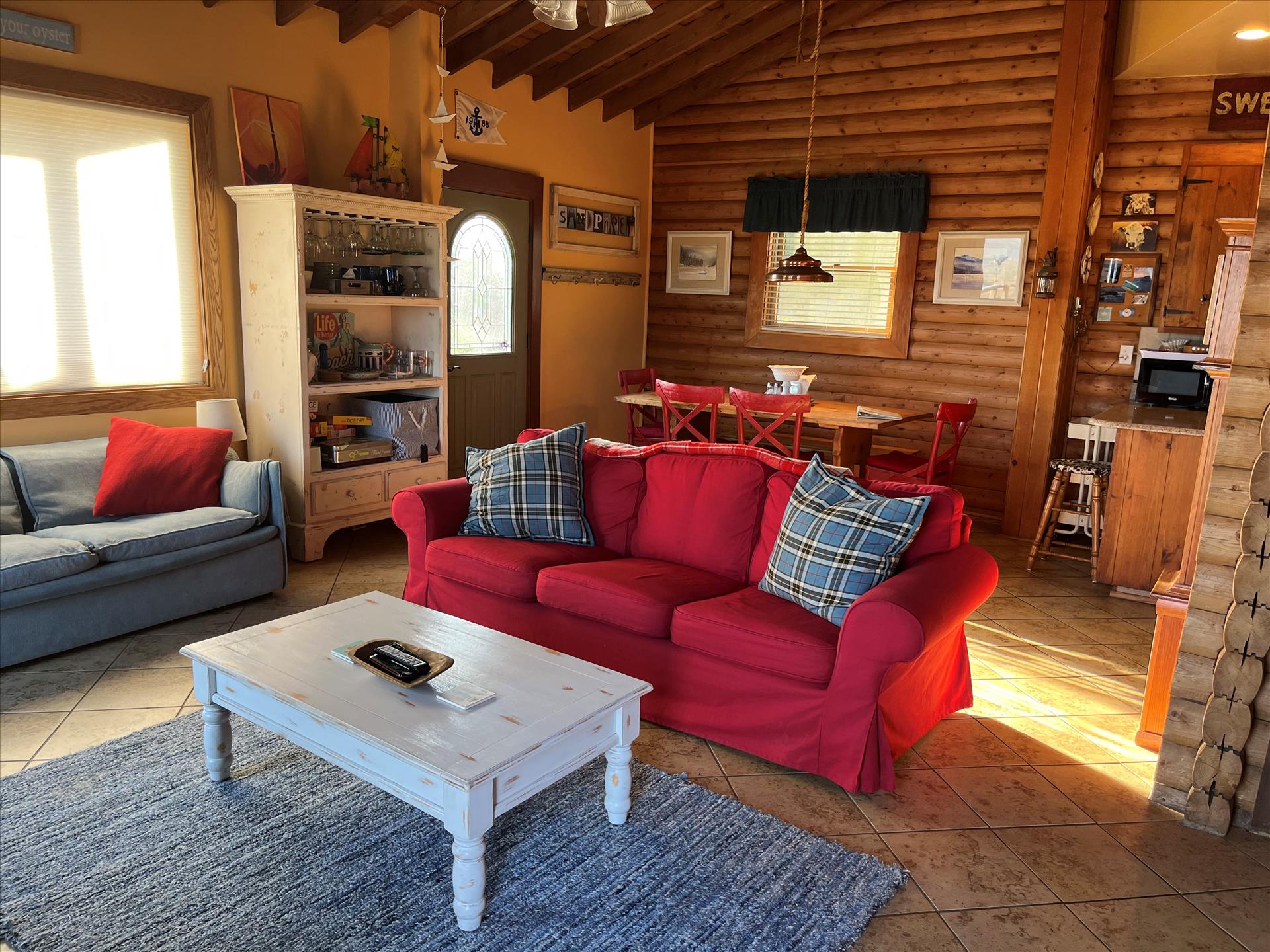 Looking for a warm, cozy seaside escape? “The Sandpipers” is a charming log home with a panoramic view from its expansive deck. You can see Tomales and Bodega Bays, the Point Reyes Peninsula and the Pacific Ocean. The hideaway is located a short walking distance from Dillon Beach and the seashore.