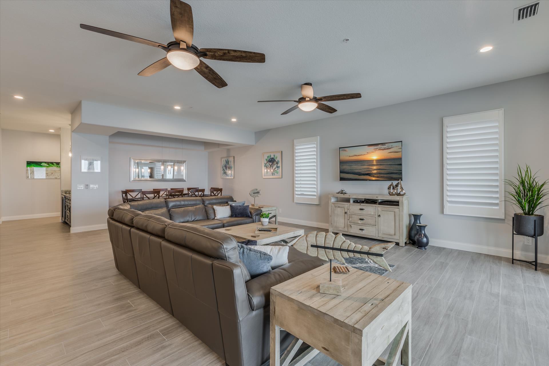 The rear of the property has a pool and hot tub, with sunbeds and seating for you and your party to relax in. There is also an outdoor shower for you to rinse off after a dip in the warm Gulf of Mexico which is just steps away. There are plenty of amenities and toys for your use. We have beach chairs and umbrellas, Paddle boards and Kayaks available for your use*. There is also a full crib, pack-n-play, high chair and baby gates for your convenience.