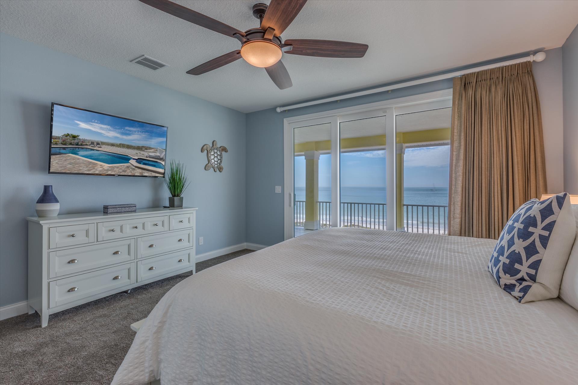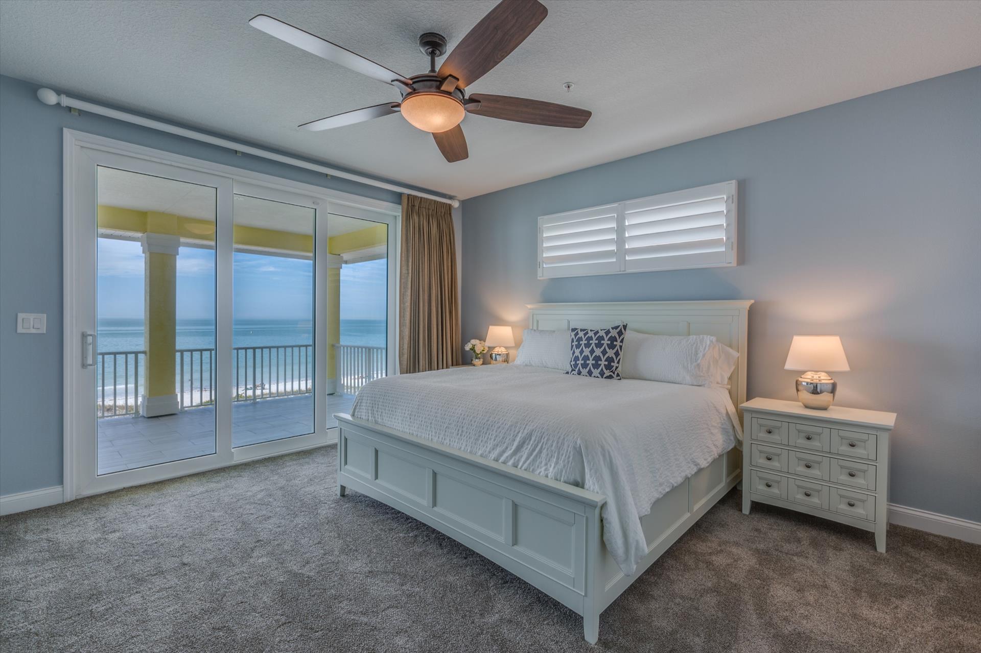 Bedroom 2 has a king bed and an en suite tub/shower combination. This bedroom and the master share a large balcony with incredible views of the beach and the Gulf of Mexico.