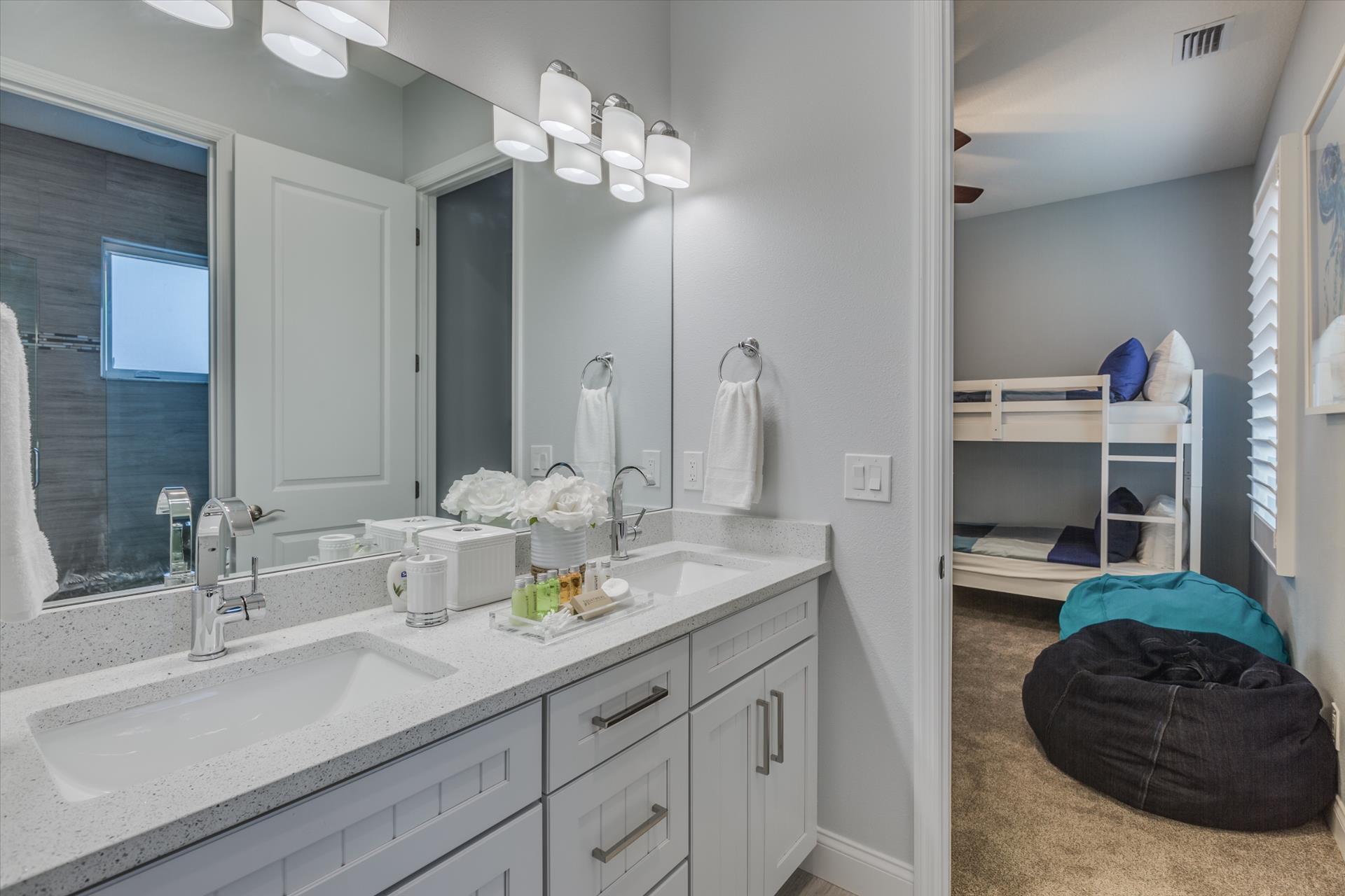 The third floor consists of the remaining 4 bedrooms. The master bedroom has a king bed and large walk in closet. The master bathroom features a soaking tub and separate walk in shower as well as a double sink/vanity unit.